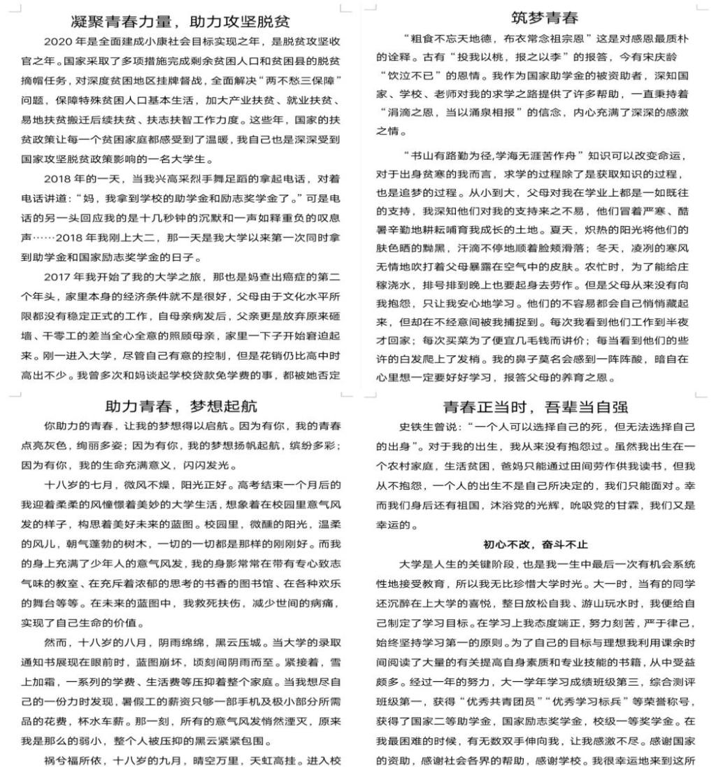2020年是我国脱贫攻坚的决胜之年,亦是全面建成小康社会的收官之年。为充分展现精准资助工作成效,激励受助员工奋发图强、立志成才、感恩奉献,6月15日至25日,公司举办“凝聚青春力量,助力脱贫攻坚”主题征文比赛。