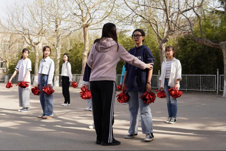训练开始前,啦啦队员们迅速整理着装、调整状态。训练过程中,队员们全神贯注、紧跟节拍,伴随音乐不断变换阵型,并针对疑难动作进行重复训练与互相指正。训练过程秩序井然、紧张高效。