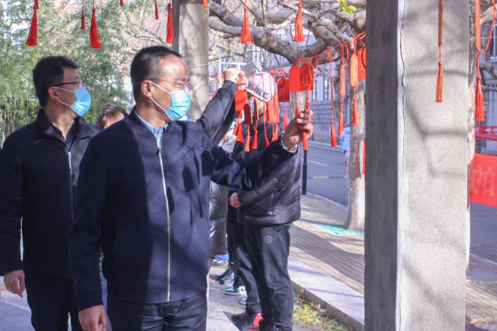 小花园附近的树梢上、走廊旁挂满了一块块写满“金榜题名”“旗开得胜”“志存高远”等寄语的“祝福牌”,路过的考研学子慎重取下其中某块,互相分享祝福,感受喜悦,精心收藏。一块块满怀心意的祝福牌,一句句温馨的祝福语,让考研学子真切地感受到温暖与关怀。