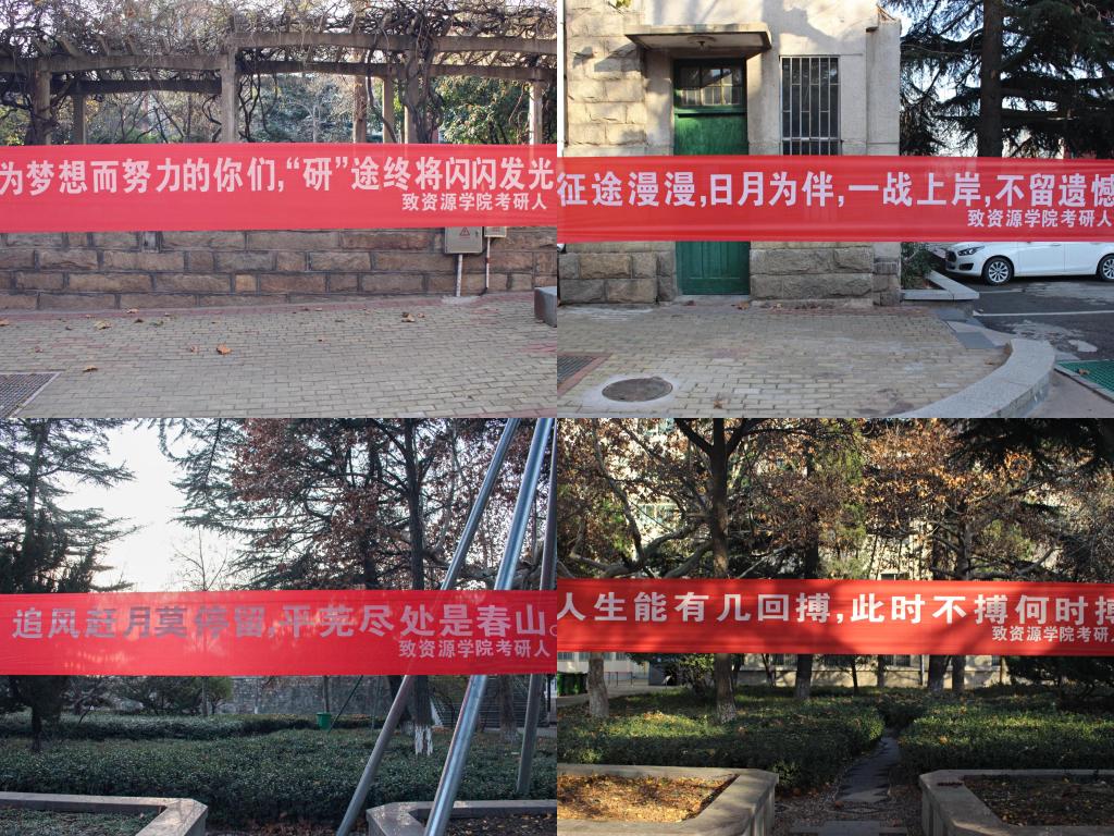 “追风赶月莫停留,平芜尽处是春山”“愿你合上笔盖的刹那,有侠客挥剑入鞘的骄傲”“征途漫漫,日月为伴,一战上岸,不留遗憾”……红艳横幅条条悬挂,为凛冬的校园增添了一抹亮色。近日,为助力冲刺,增强迎考信心,信誉最好的十大体育平台组织开展“横幅送祝福”考研助力活动,为考研学子送上诚挚祝福。