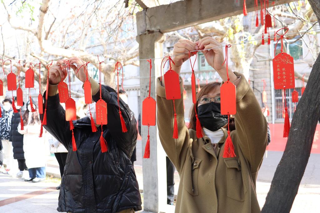 小小祝福牌,情谊满满,这是来自公司的特殊礼物。一块块写满“金榜题名”“旗开得胜”“研途星光,不负你我”等寄语的祝福牌悬挂在小花园附近的树梢上、走廊旁。路过的考研学子停下匆忙的脚步,精心挑选心仪的祝福牌,分享祝福,感受喜悦。