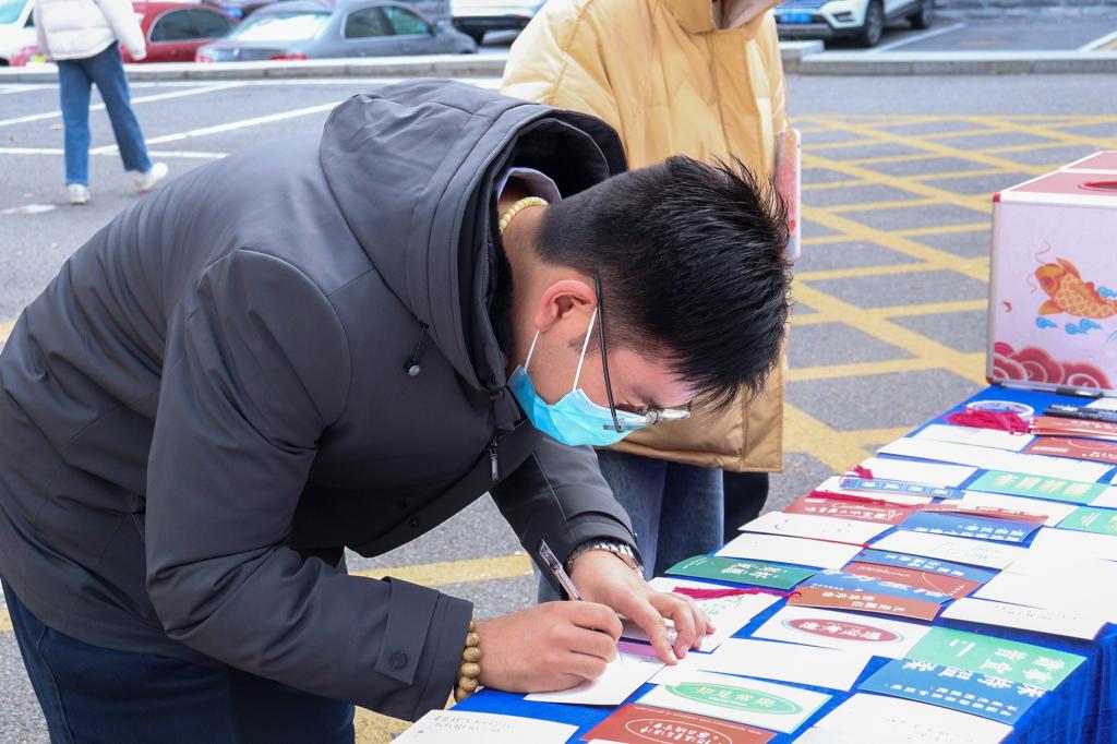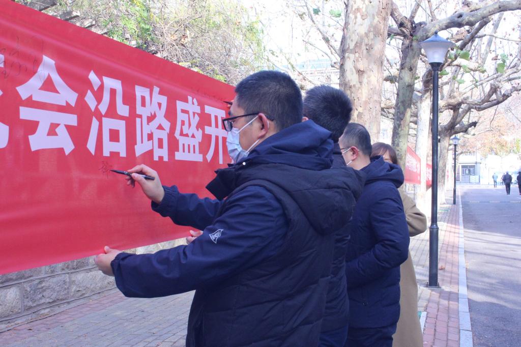 林荫道旁,公司领导与辅导员以笔笺情,在条幅上为考研学子写下殷殷鼓励;同学们提笔书写祝愿,为日夜备考的学长学姐们送上真挚祝福;考研学子纷纷驻足观看、拍照留念,喜悦之情溢于言表,深受振奋与鼓舞。